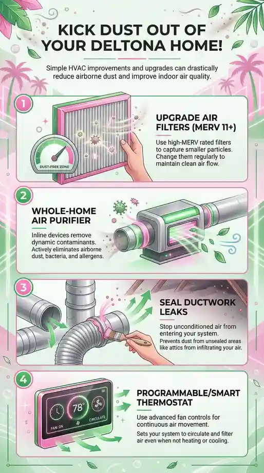 Q: What HVAC upgrades actually reduce dust in a Deltona FL home?