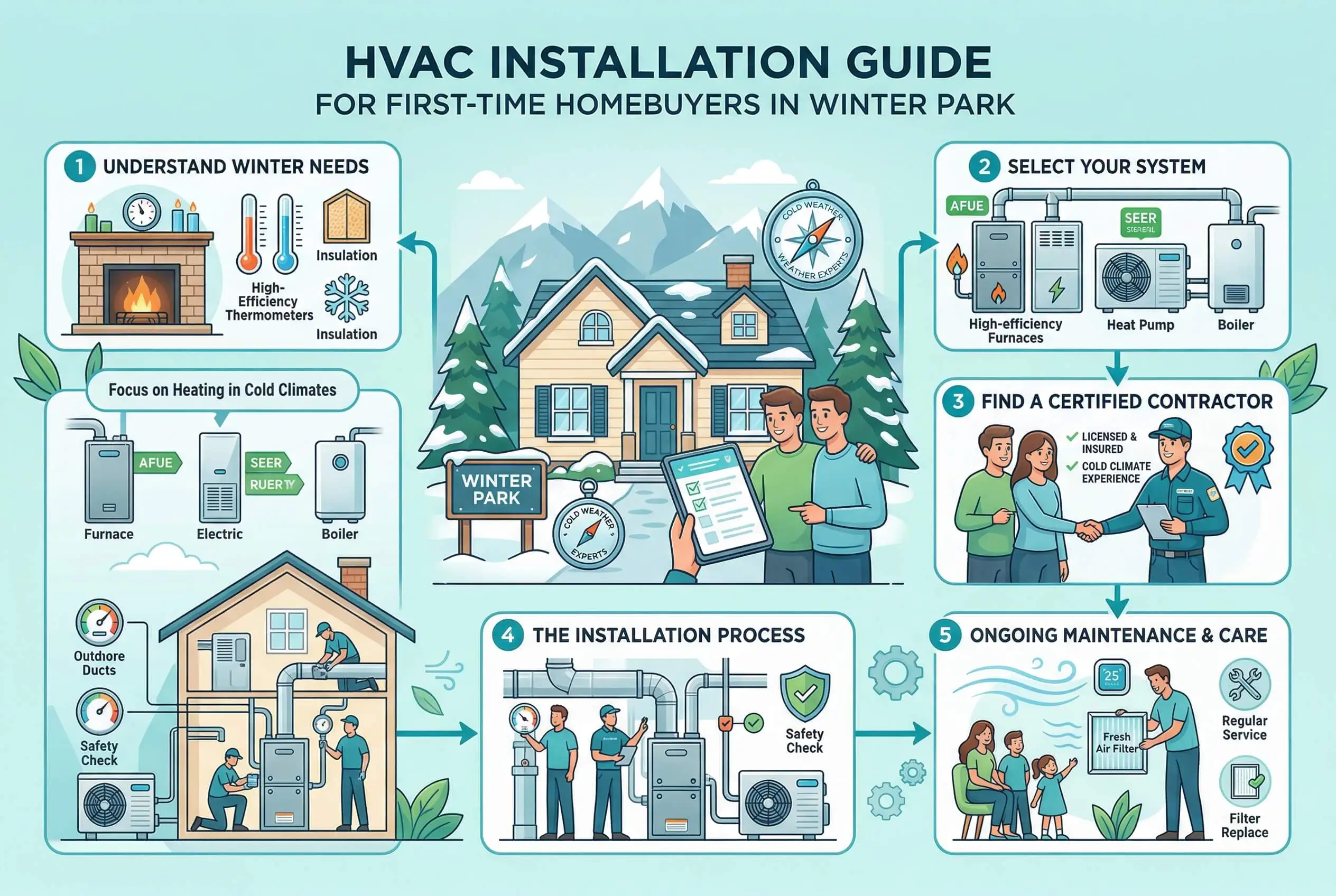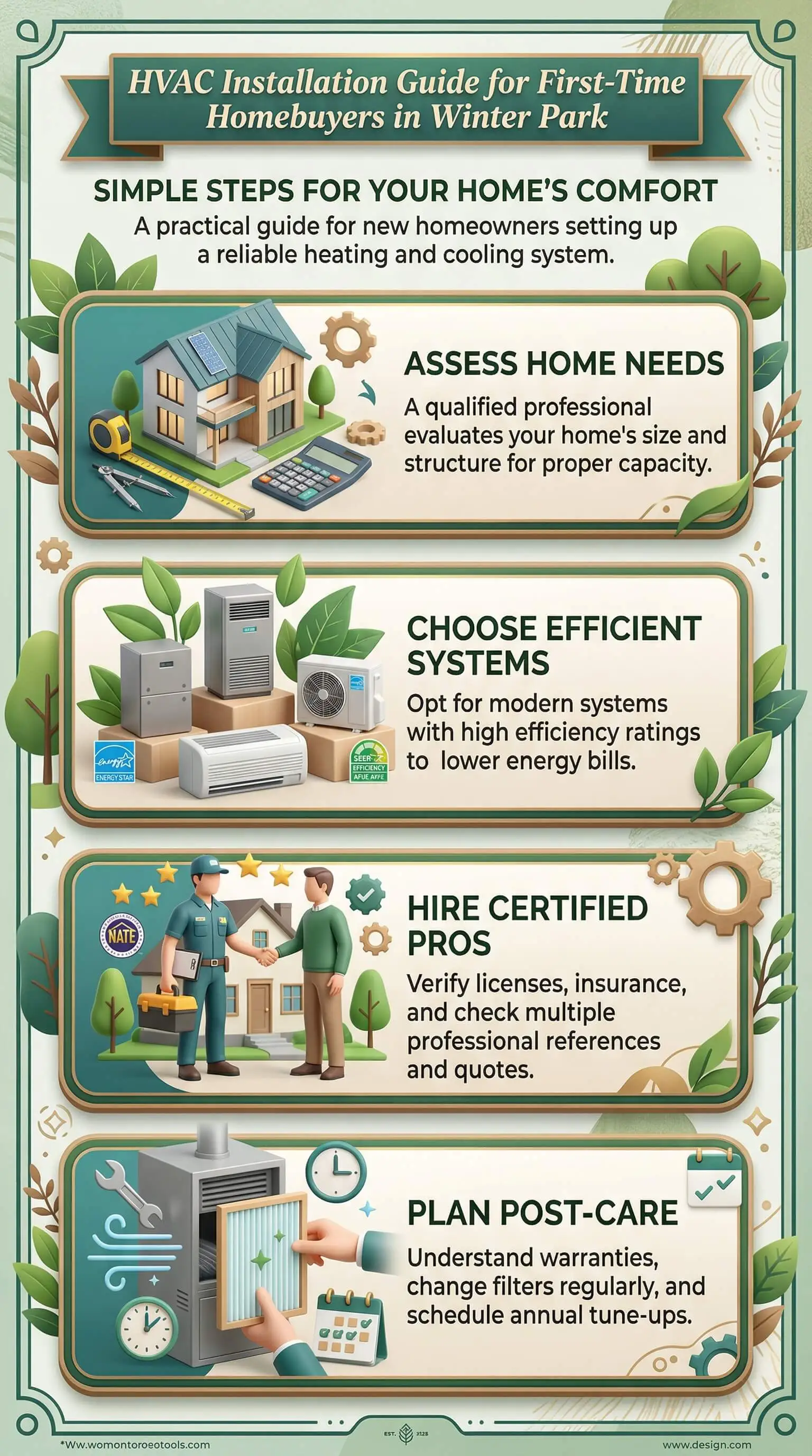 These essential resources help first-time homebuyers in Winter Park understand the benefits of hiring a professional for HVAC installation, from choosing the right system and heat pump for Central Florida’s climate to improving indoor air quality, verifying energy efficiency, and making sure permits, code compliance, and long-term operating costs are properly addressed before work begins.